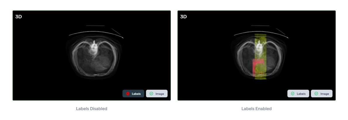 The DICOM tool have a performance optimization update where the users can toggle on/off both the 3D image and labels. This helps in maximizing the speed & performance based on the needs.