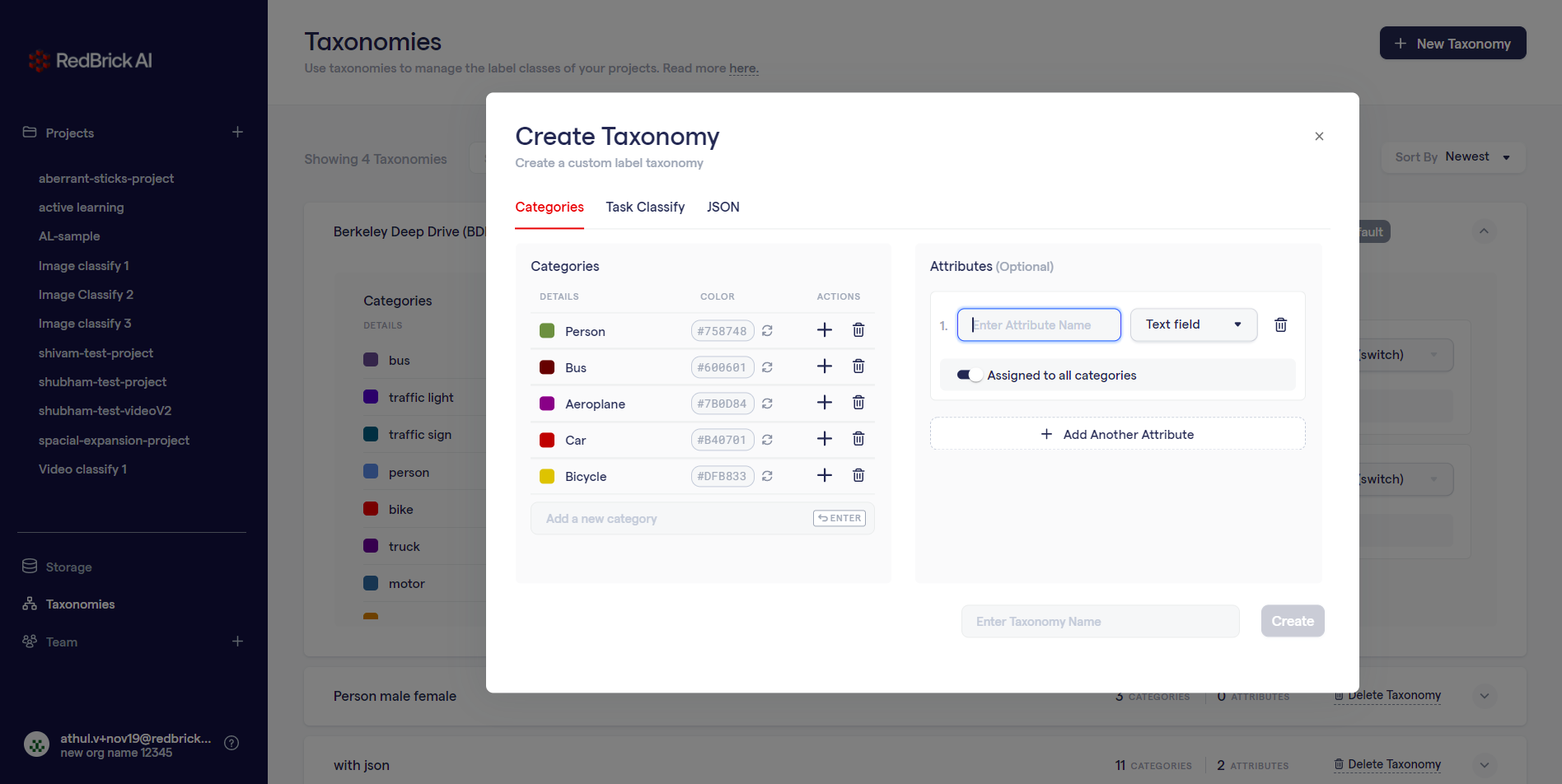 The create/edit taxonomy now has an updated design considering the overall functionality and requirement of the user group. One of the major changes involve the placement of an attribute list parallel to the categories allowing for a more detailed understanding of the work flow.